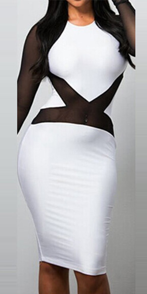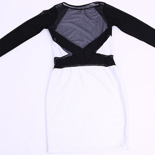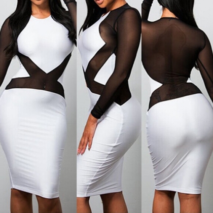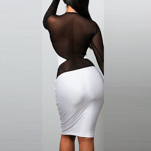 This bodycon dress is a perfect way to show off your a little skin! Features see-through gauze