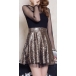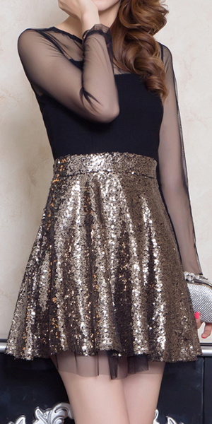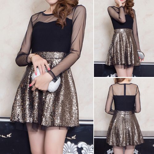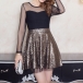 Its stunning details such as see-through gauze spliced and sequin design makes this dress