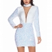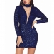 Sexy See-through Gauze Spliced Long Sleeve Slim Fit Sequin Party Dress