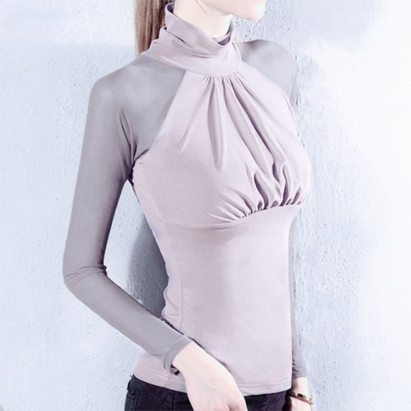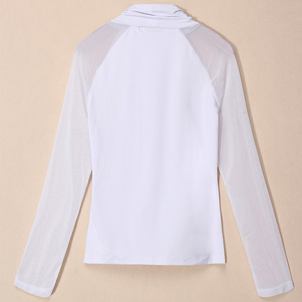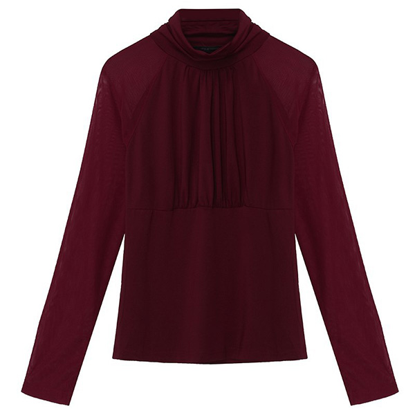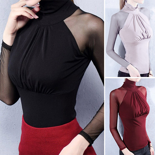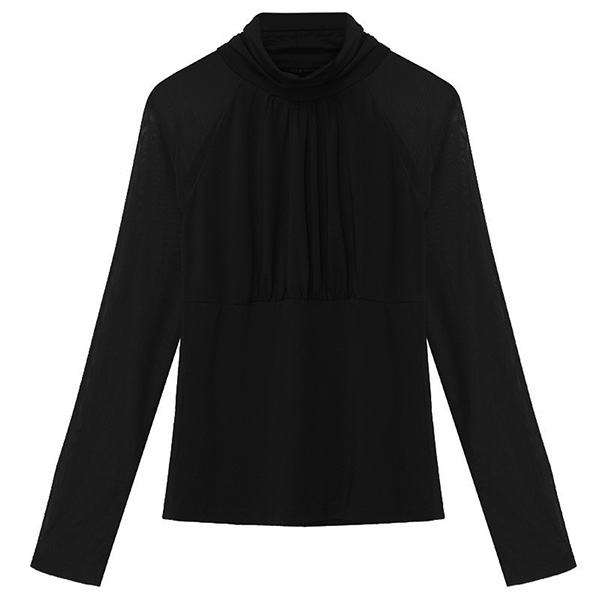 long sleeve,turtleneck and a fit silhouette. The most appealing design? The see-through gauze spliced design can further
