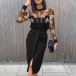 Sexy See-through Gauze Spliced Long Sleeve Twisted Slim Fit Dress