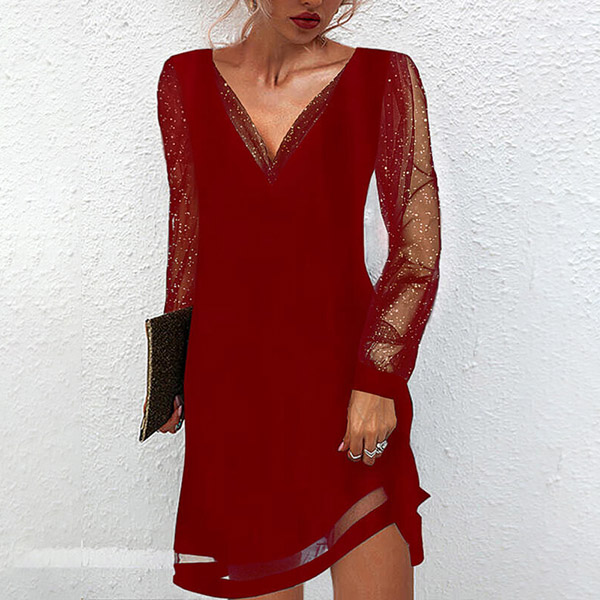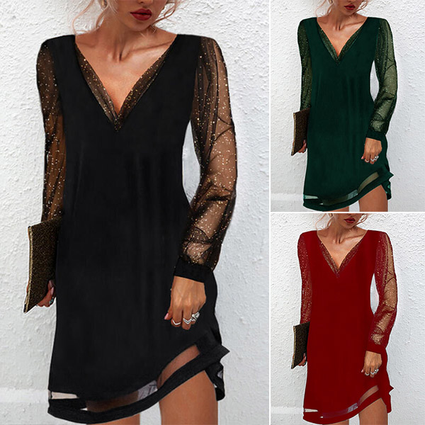 Wanna try a different style dress? Then look no further than this piece. The v-neck and see-through gauze spliced design make this piece full of sexy and flirty vibes. Meanwhile,its soft and breathable fabric can ensure the comfy. So why not save this dress for your special occasions.