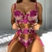 Sexy See-through Gauze Spliced Peony Embroidery Lingerie Set