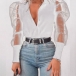 Sexy See-through Gauze Spliced Puff Sleeve Deep V-neck Top