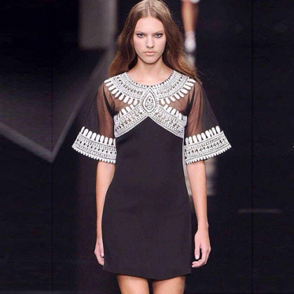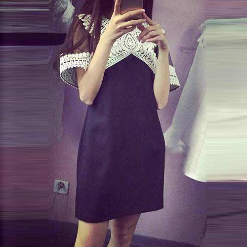 This dress features see-through gauze and hollow out crochet spliced design,sexy and chic.