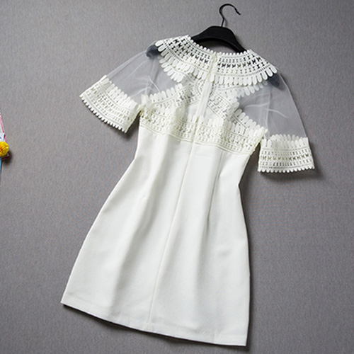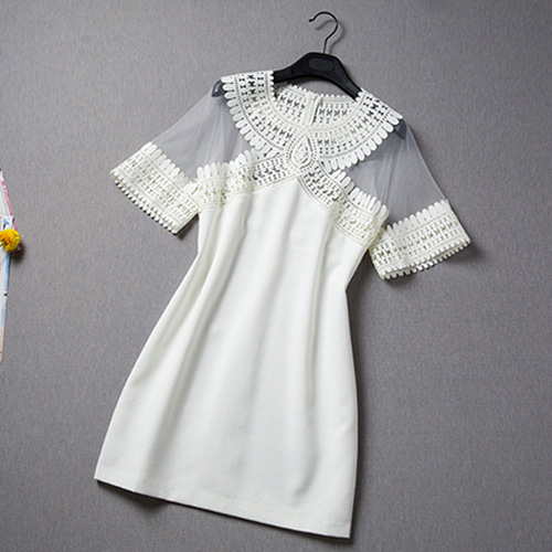 Sexy See-through Gauze Spliced Short Sleeve Dress