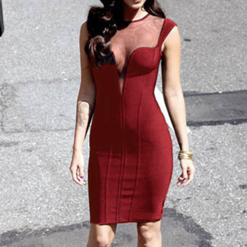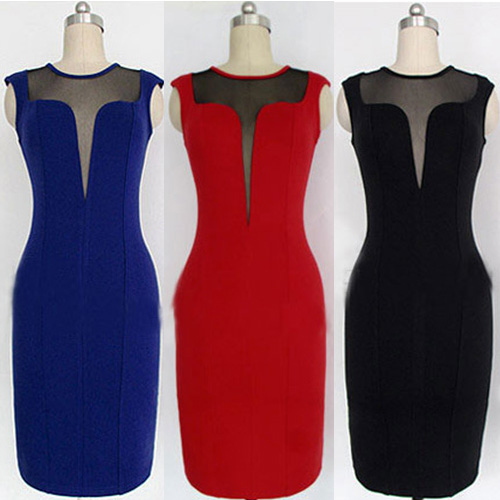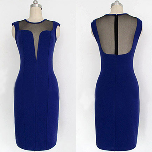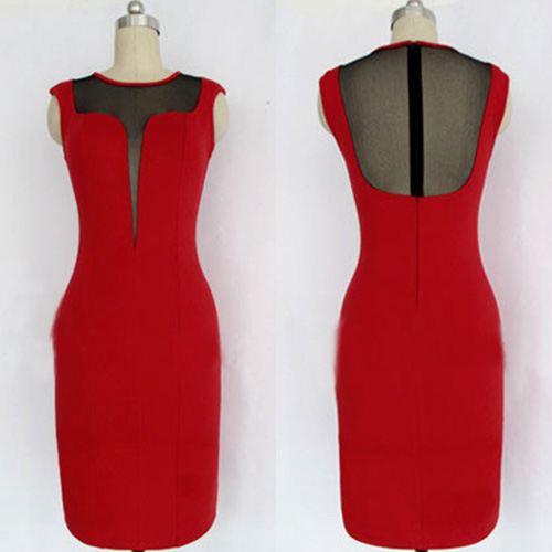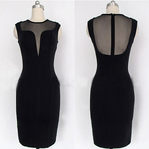 This sleeveless dress is a perfect choice for parties and gatherings. Its see-through gauze spliced