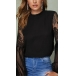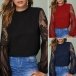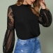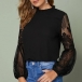 Sexy See-through Gazue Spliced Lantern Sleeve Round Neck T-shirt Top