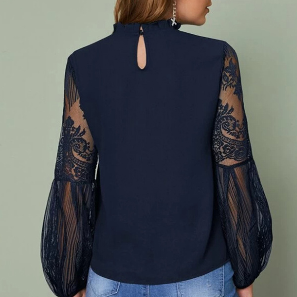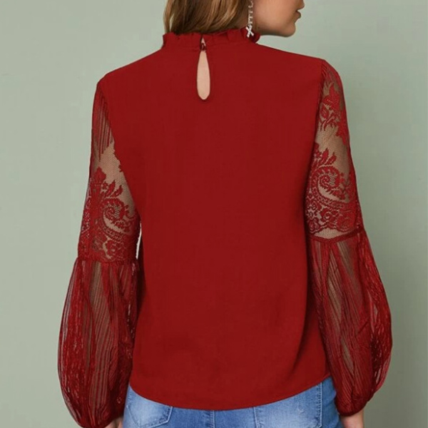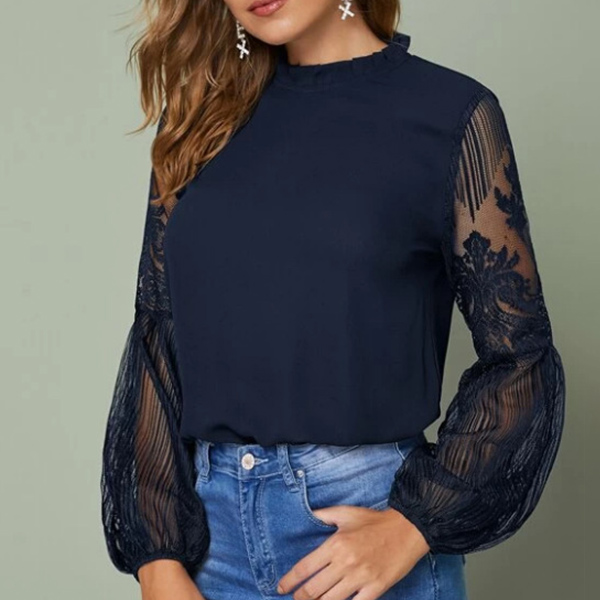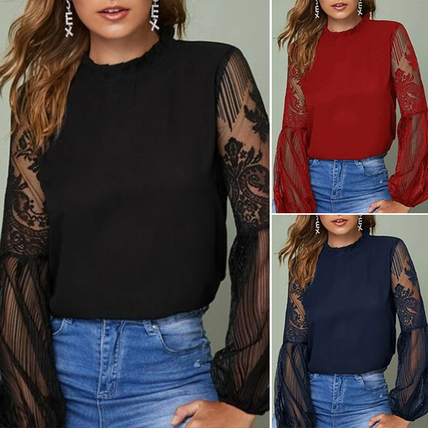 Only need one glance,you would be attracted by this sassy and flirty top. The see-through gauze spliced lantern sleeve design is the highlight,which can lend you some sexy and feminine vibes. No matter matching with a shorts,skirt or jeans,you can look fashionable enough!