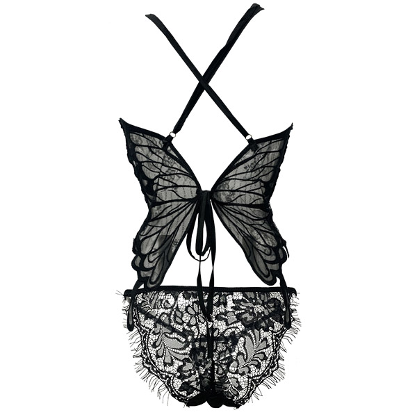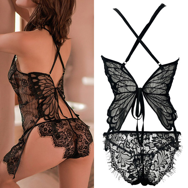 Wanna add some different flavor to your dull nights? Then you can just slip into this lingerie set. The see-through lace and back butterfly design make it look so alluring and wild. Your perfect and seductive curve can have a full display in this lingerie set.