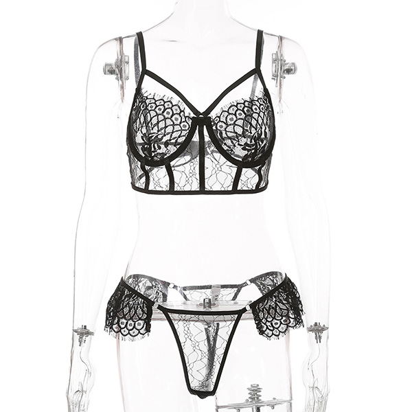 As a woman,you should have such a sexy and flirty lingerie set in your wardrobe. Including a lace bra and a T-back,the see-through lace style makes it look so alluring. It not only can shape your curve,but also can enhance your feminine appeal.