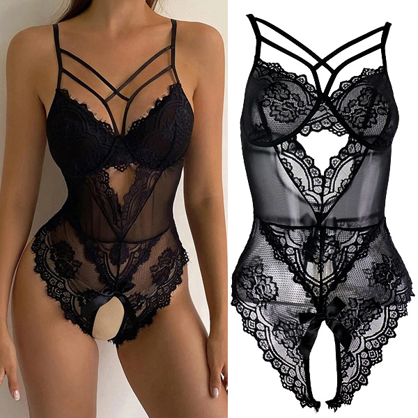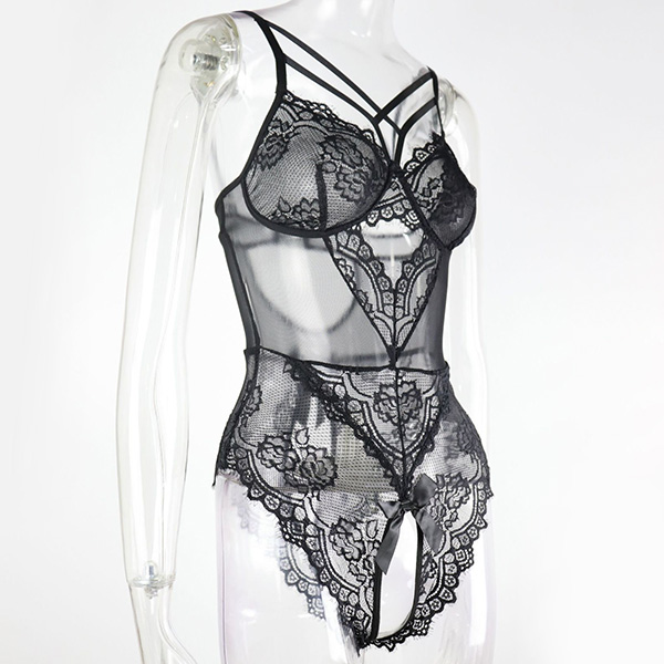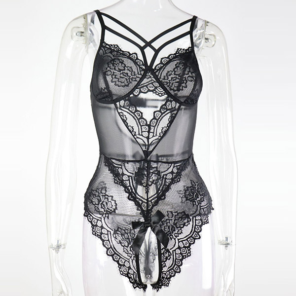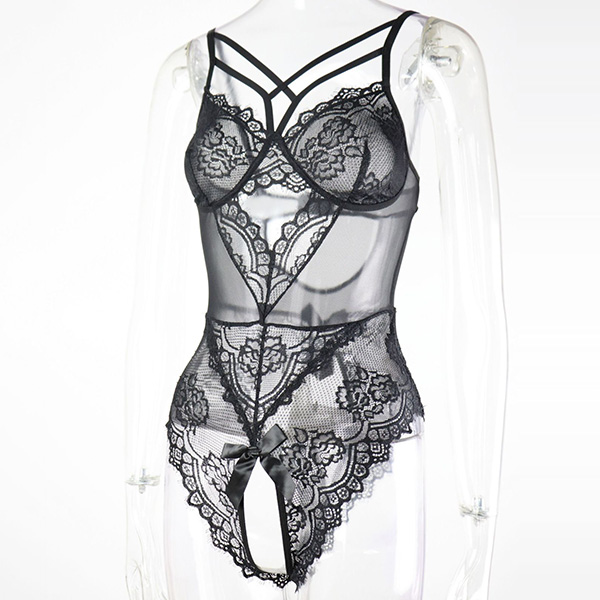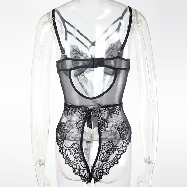 Sexy See-through Lace Spliced Cut-out Lingerie Bodysuit