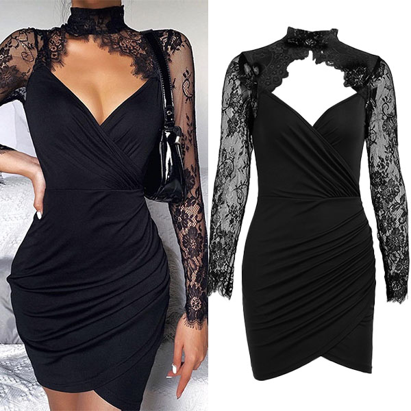 You can easily arouse a splash when you wear this dress. Its alluring design details like see-through lace spliced and hollow out design can make you look sexy and flirty enough,while the tight silhouette design will highlight your slender figure. For your cocktail parties,this little stunner can make you stand out in the crowd!