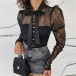 This shirt that combines of cozy yet sexy vibes is worth to arouse your attention. The see-through gauze spliced details make this piece look so alluring and flirty,while the lace-up bow-knot collar design can lend you a dash of sweet and charming vibes. No matter matching with a shorts,skirt,jeans or suit pants,you can easily achieve for a charming daily look.