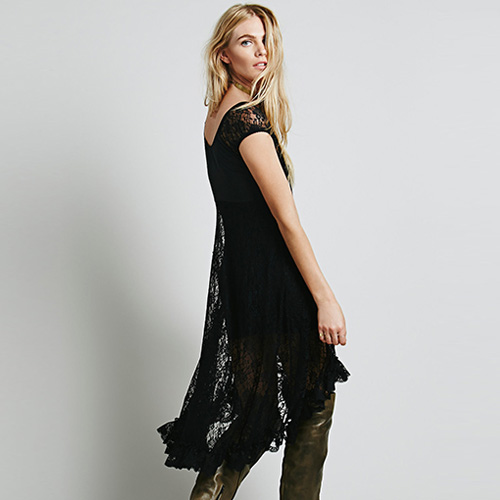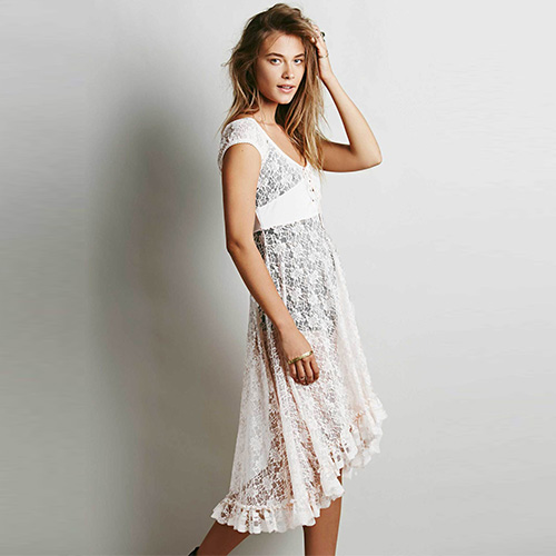 This dress features see-through lace style,bring you a kind of sexy and beauty feeling. High-low hemline