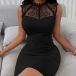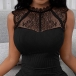 Sexy See-through Lace Spliced Sleeveless Round Neck Tight Dress