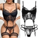 Sexy See-through Lace Spliced Solid Color Lingerie Set