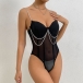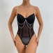 Sexy See-through Rhinestone Cut Out Lingerie Bodysuit