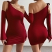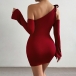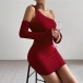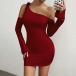 Sexy Self-tie Slant Shoulder Long Sleeve Bodycon Party Dress
