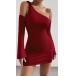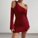 This dress features a self-tie slant shoulder design that adds a modern and edgy touch, and a bodycon silhouette that hugs your curves. It is a party-ready aesthetic that is sure to turn heads.