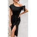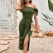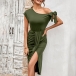Sexy Self-tie Slanting Collar Cinched Waist Slit Dress