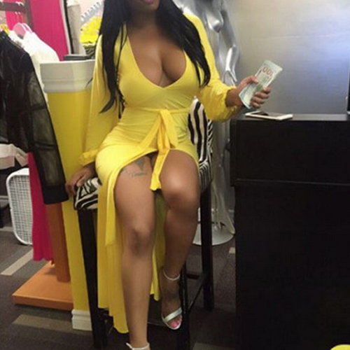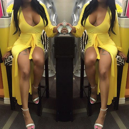 It features self-tie, front slit and long sleeves. Suitable for dating or special days.
