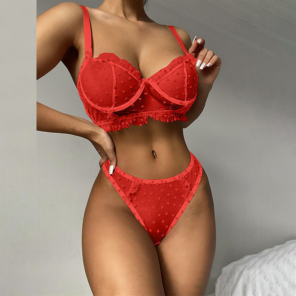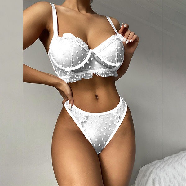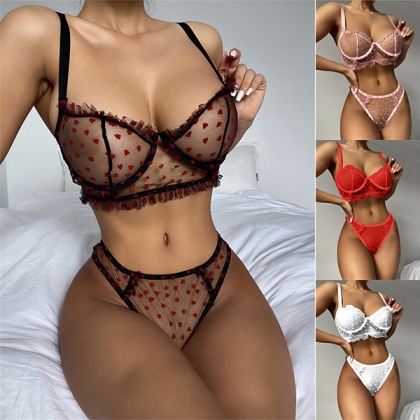 Sexy Semi-through 3D-Floral Two-piece Lingerie Set