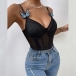 Sexy Semi-through Butterfly V-neck Backless Bodysuit