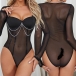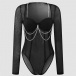 Sexy Semi-through Chain Long Sleeve Lingerie Bodysuit