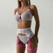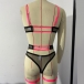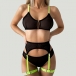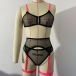 Sexy Semi-through Contrast Color Three-piece Lingerie Set
