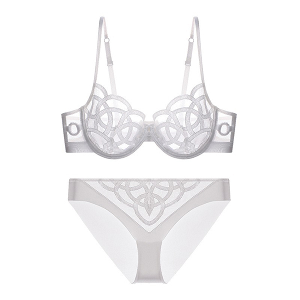 Sexy Semi-through Embroidery Two-piece Lingerie Set