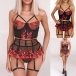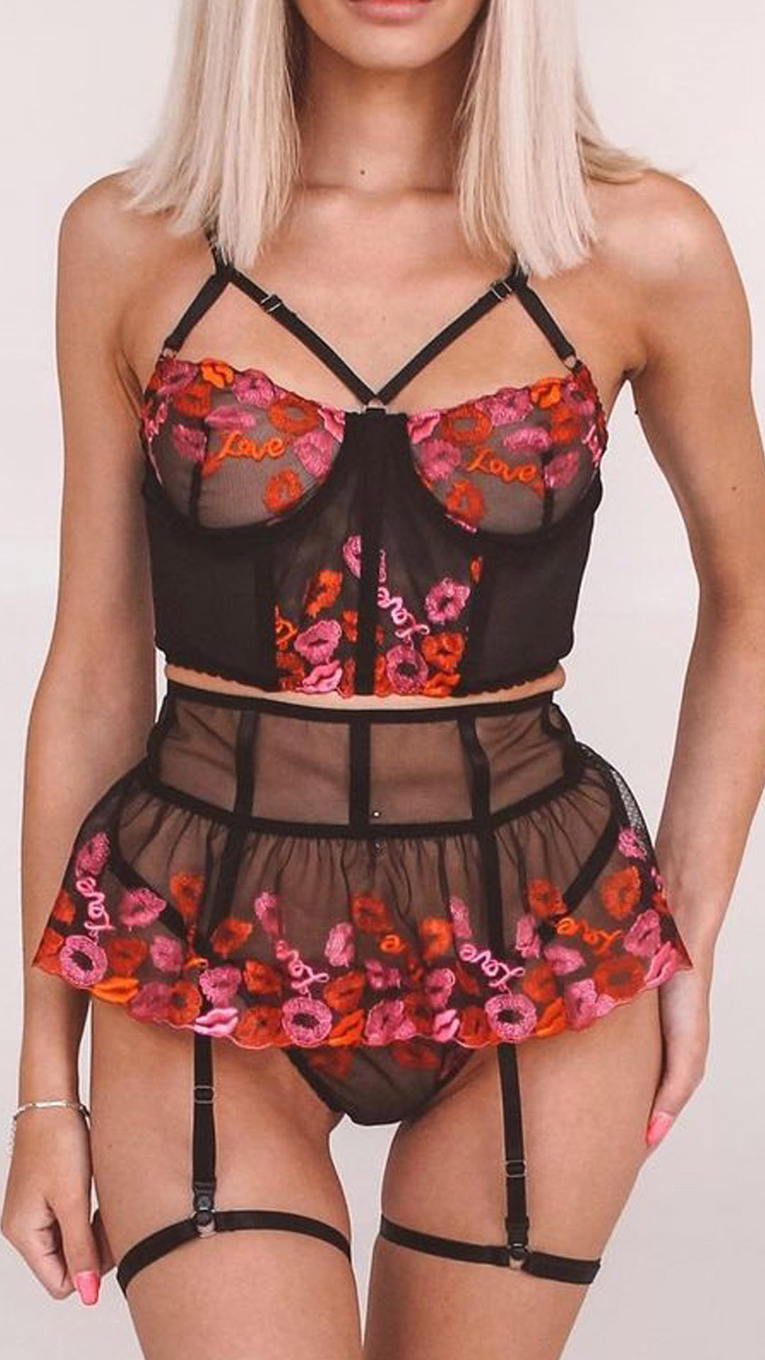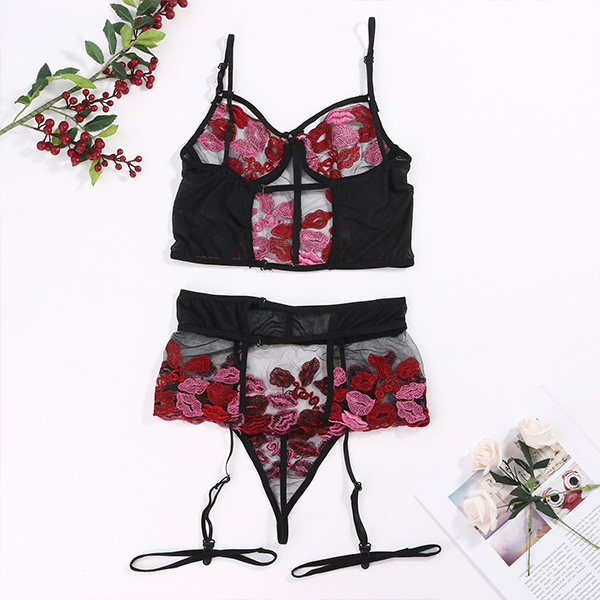 Sexy Semi-through Floral Embroidered Three-piece Lingerie Set