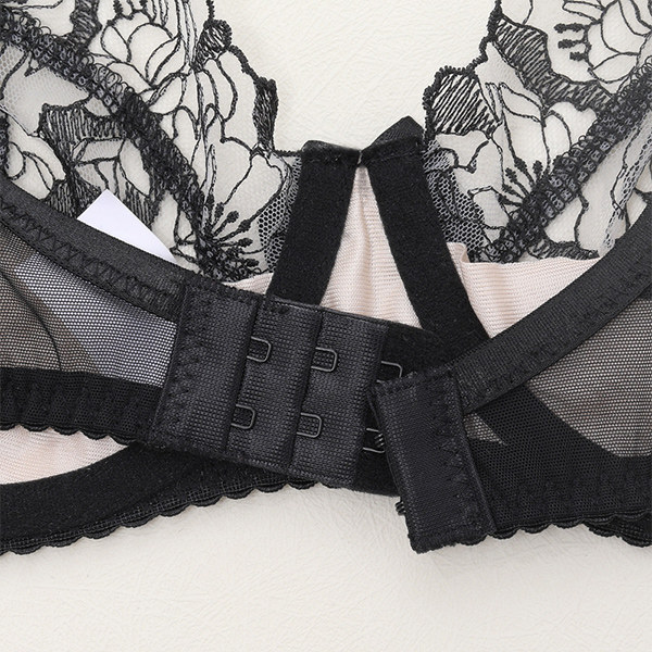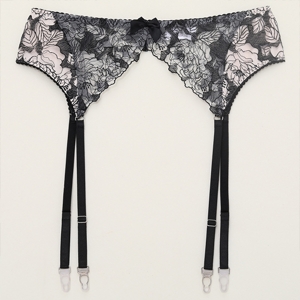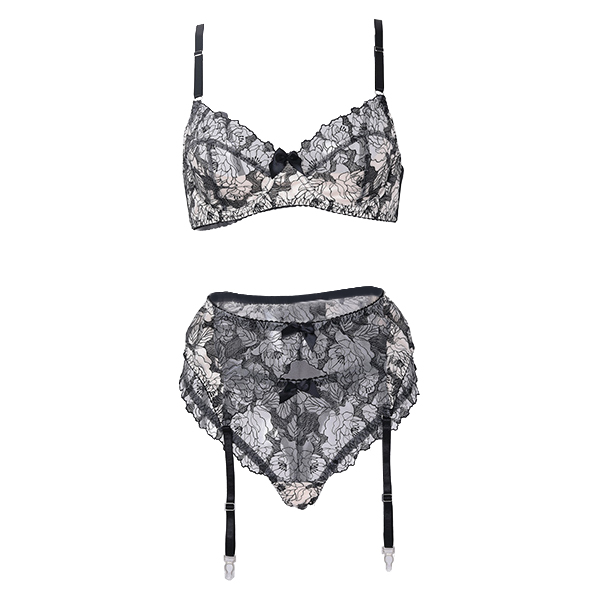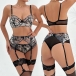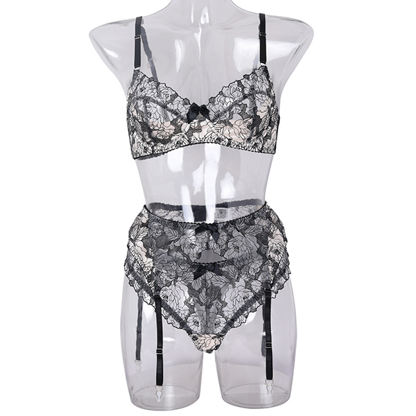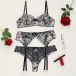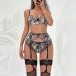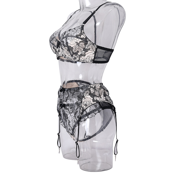 Sexy Semi-through Floral Embroidery Four Piece Lingerie Set