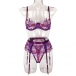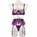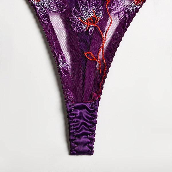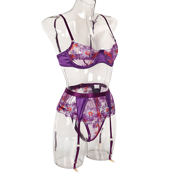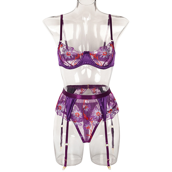 Sexy Semi-through Gauze Floral Embroidery Three-piece Lingerie Set