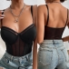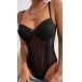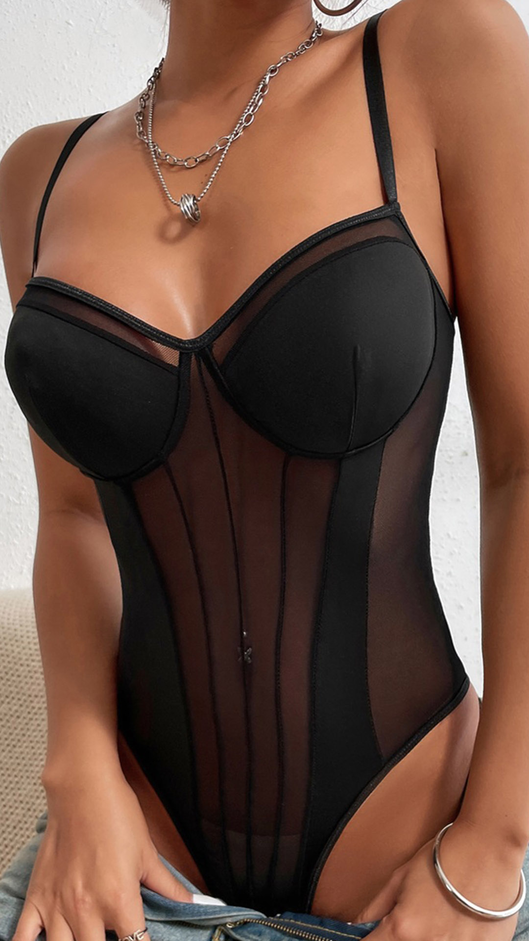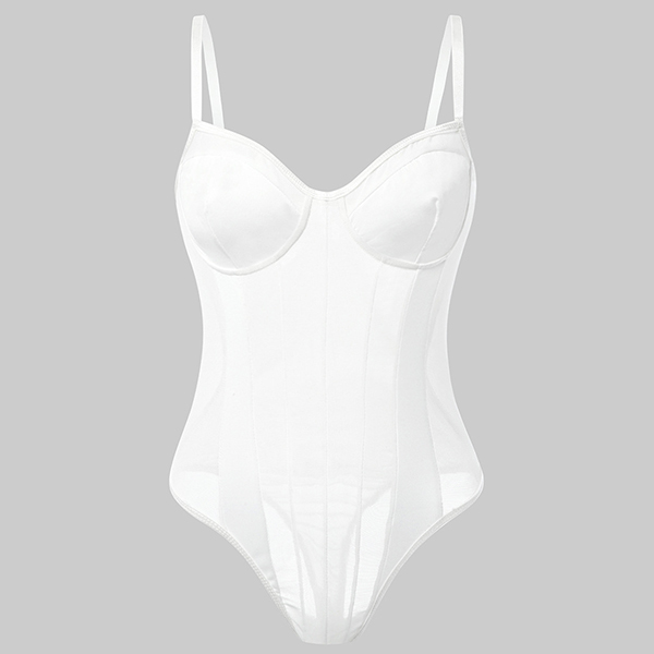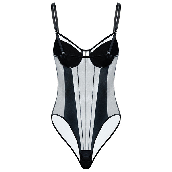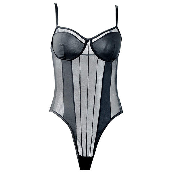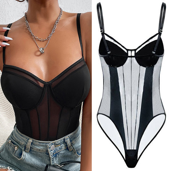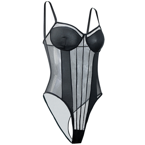 Sexy Semi-through Gauze Spliced Cami Bodysuit