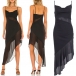 This is a sexy dress with an irregular hemline. It is made of a lightweight, airy fabric that is perfect for summer.