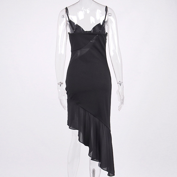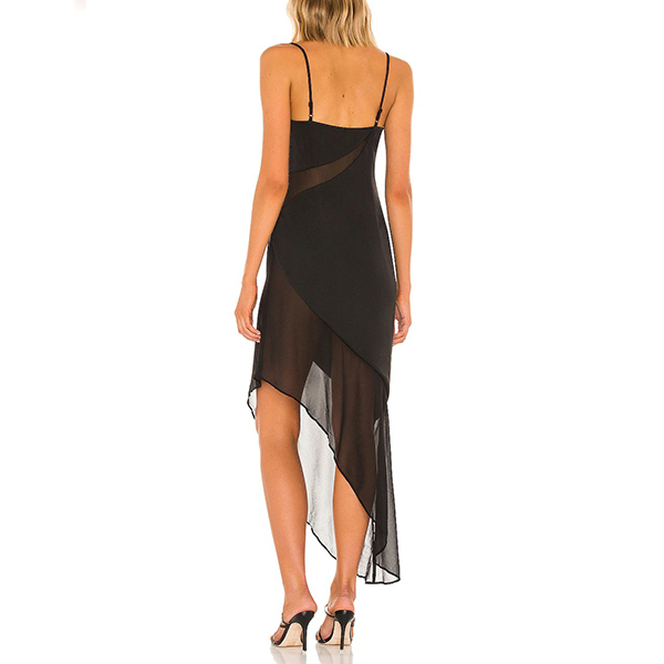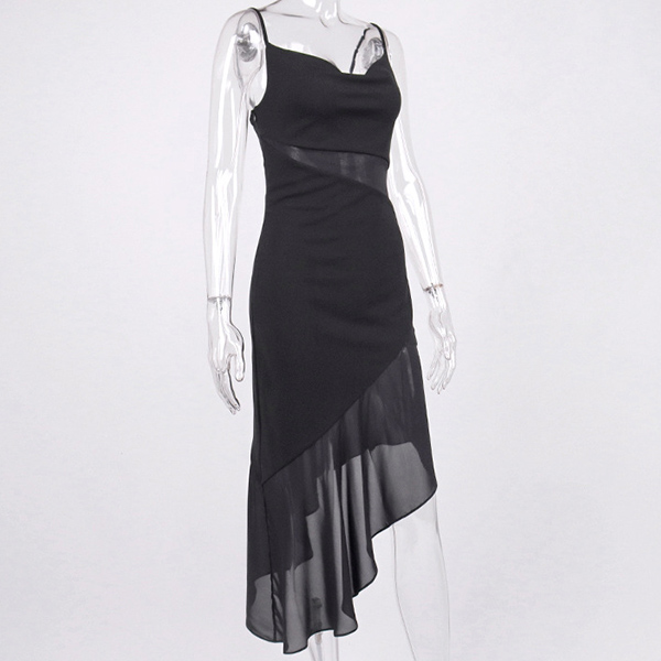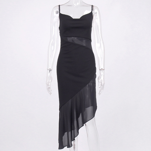 Sexy Semi-through Gauze Spliced Irregular Hemline Slip Dress