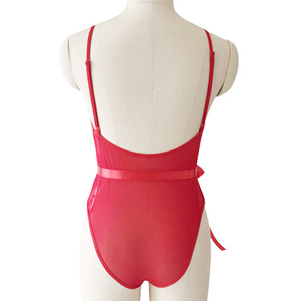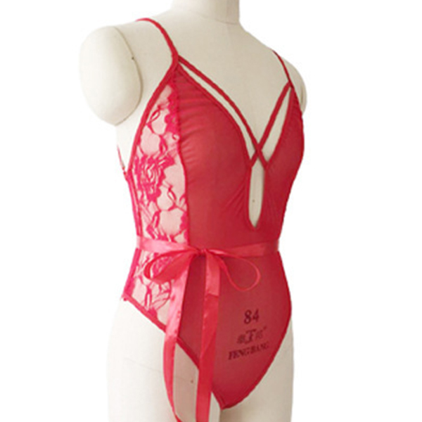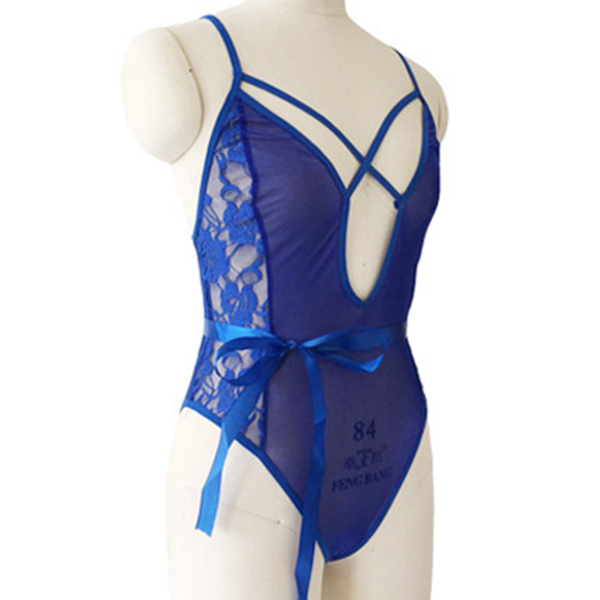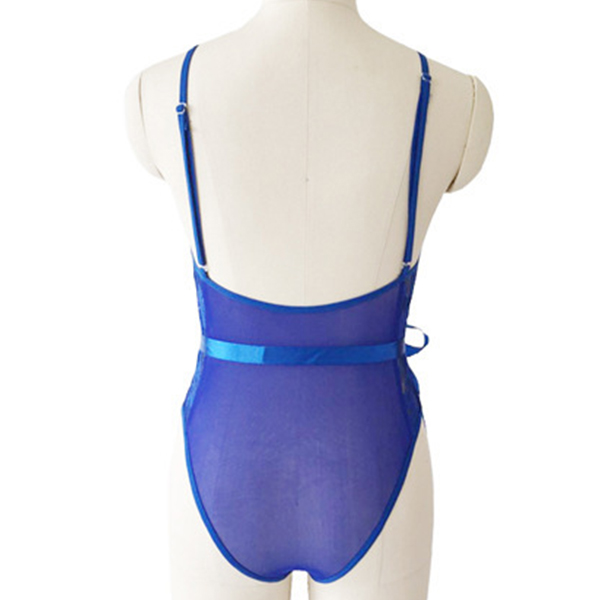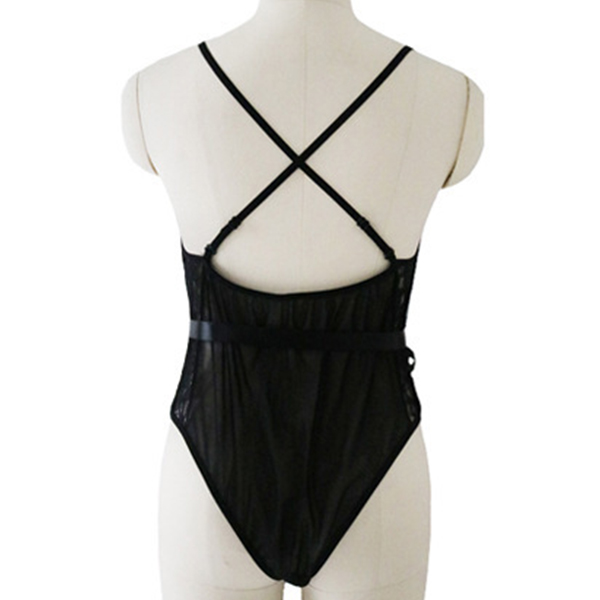 Sexy Semi-through Gauze Spliced Lace Cutout Lingerie Bodysuit