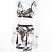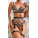Sexy Semi-through Gauze Spliced Leopard Printed Three-piece Lingerie Set