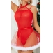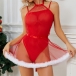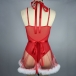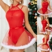 Sexy Semi-through Gauze Spliced Plush Halter Neck Lingerie Bodysuit for Christmas
