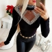 Sexy Semi-through Gauze Spliced Rhinestone Long Sleeve Shirt