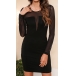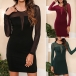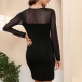 Sexy Semi-through Gauze Spliced Round Neck Long Sleeve Bodycon Dress
