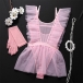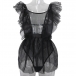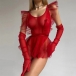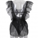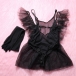 Sexy Semi-through Gauze Spliced Ruffle Lingerie Set with Gloves
