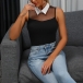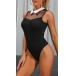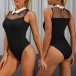Sexy Semi-through Gauze Spliced Sleeveless Stand Collar Bodysuit