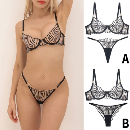 Sexy Semi-through Gauze Spliced Two-piece Lingerie Set
