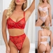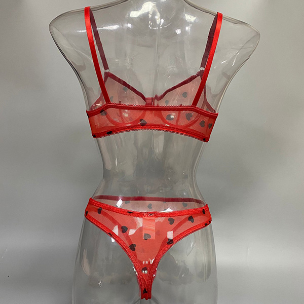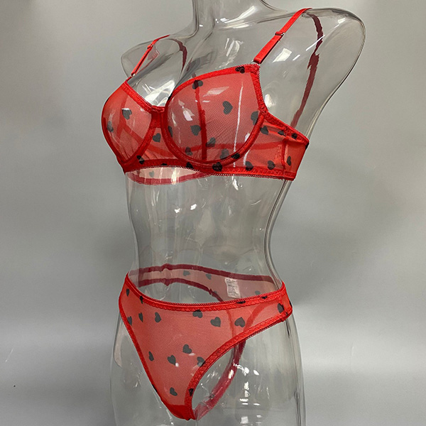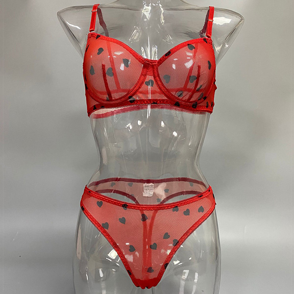 Sexy Semi-through Heart Printed Two-piece Lingerie Set