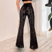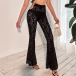 These pants are semi-sheer, high-waisted, and have a wide-leg silhouette. They are made from a lightweight material that is perfect for summer.