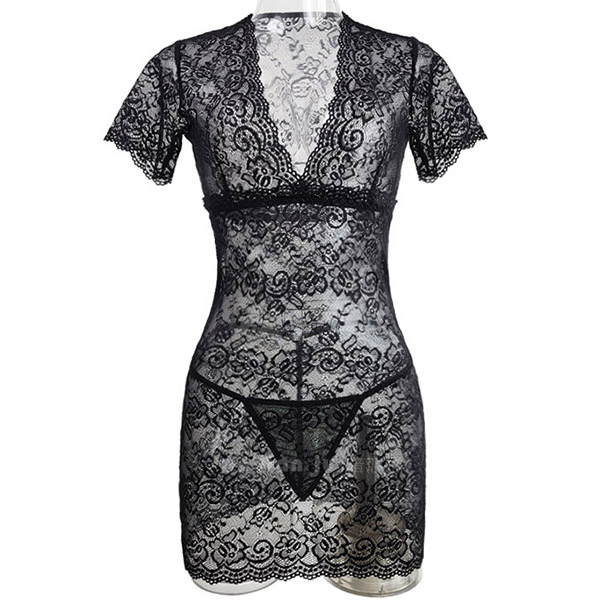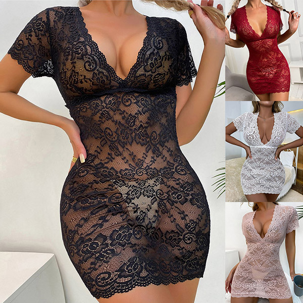 Sexy Semi-through Lace Bodycon Nightwear Dress