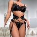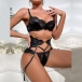 Sexy Semi-through Lace Chain Three-piece Lingerie Set
