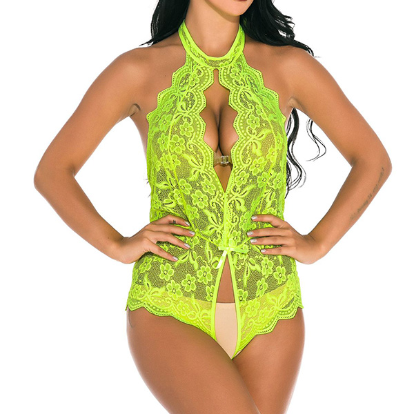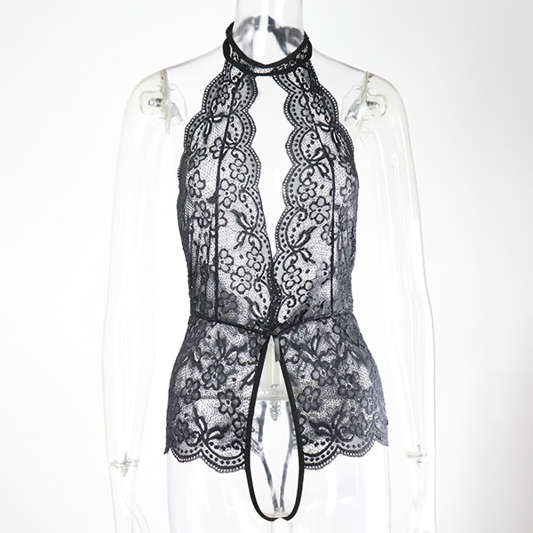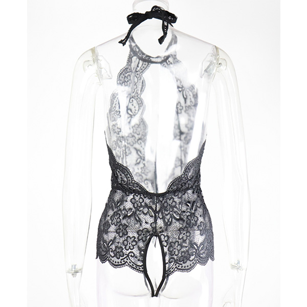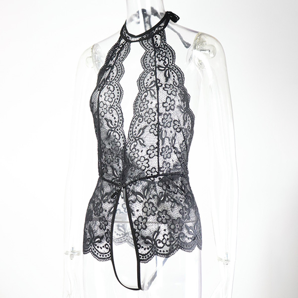 Sexy Semi-through Lace Halter Lingerie Bodysuit